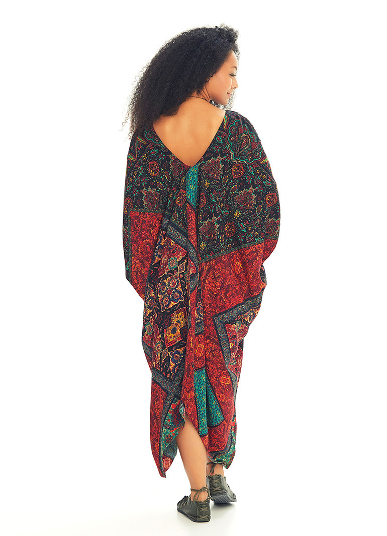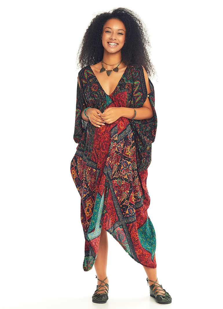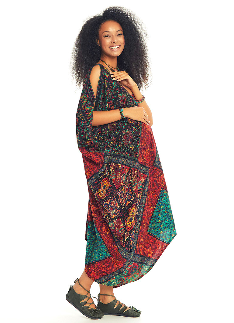 Etnik Desenli Yazlık V Yakalı Hamile Elbise 3470