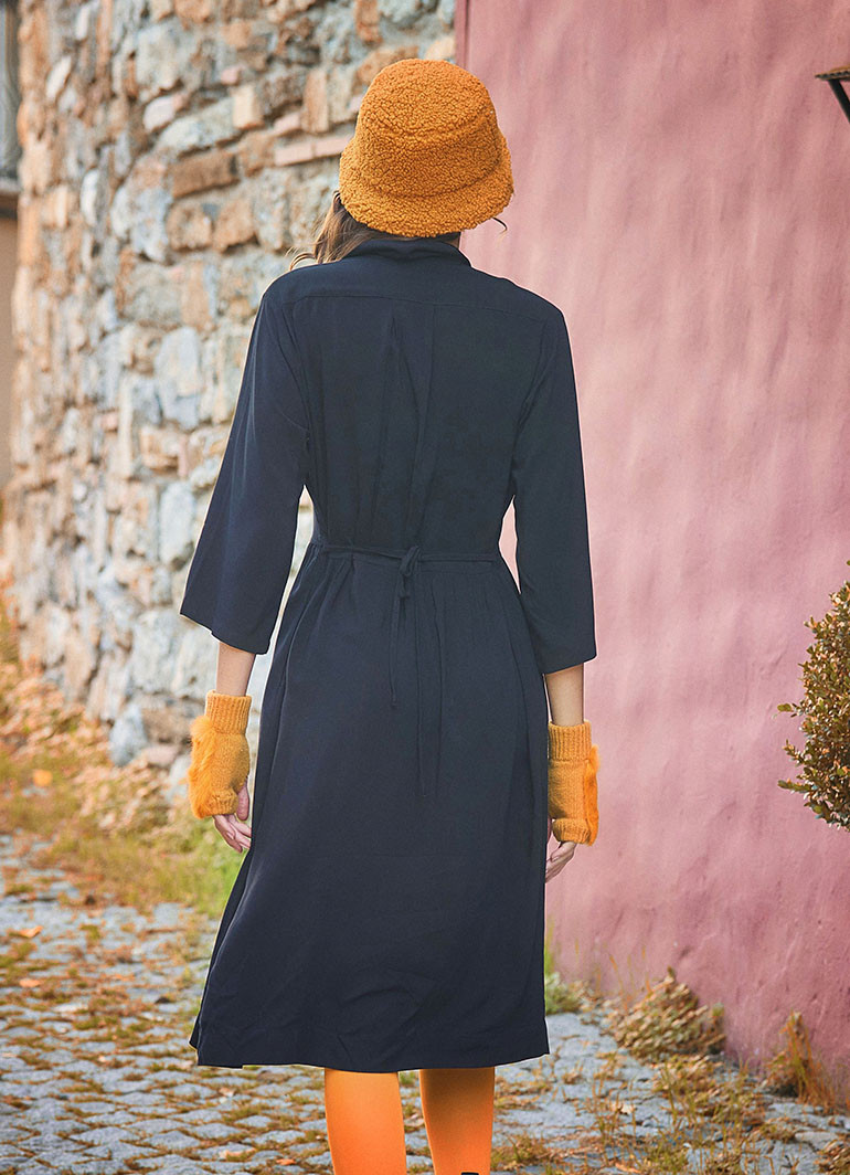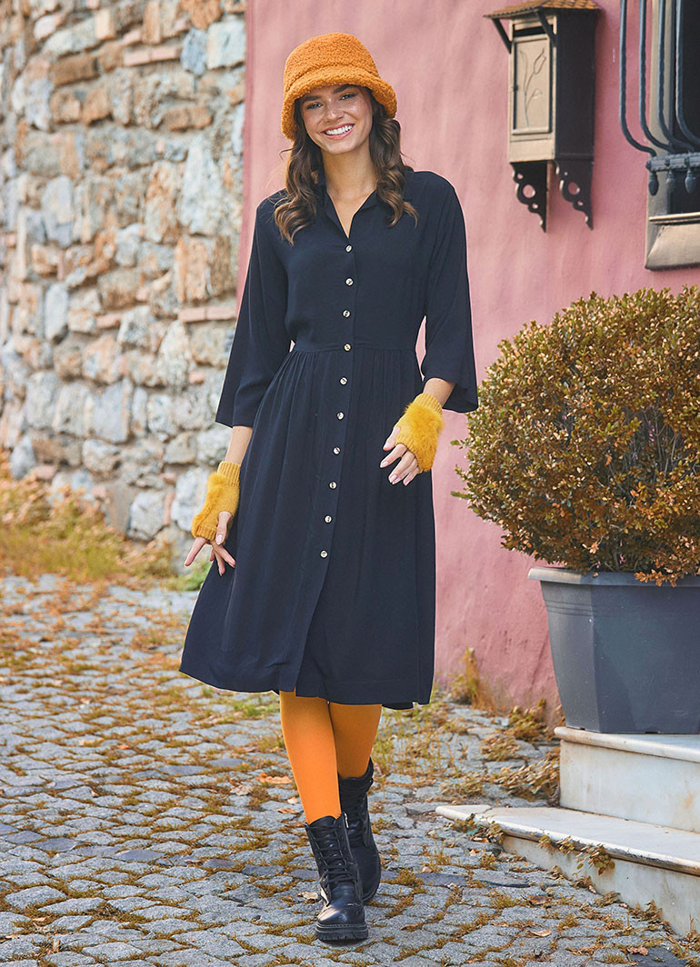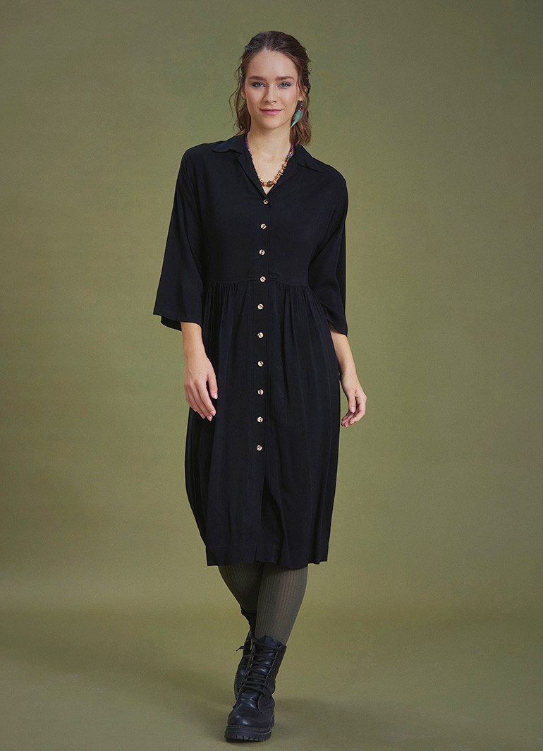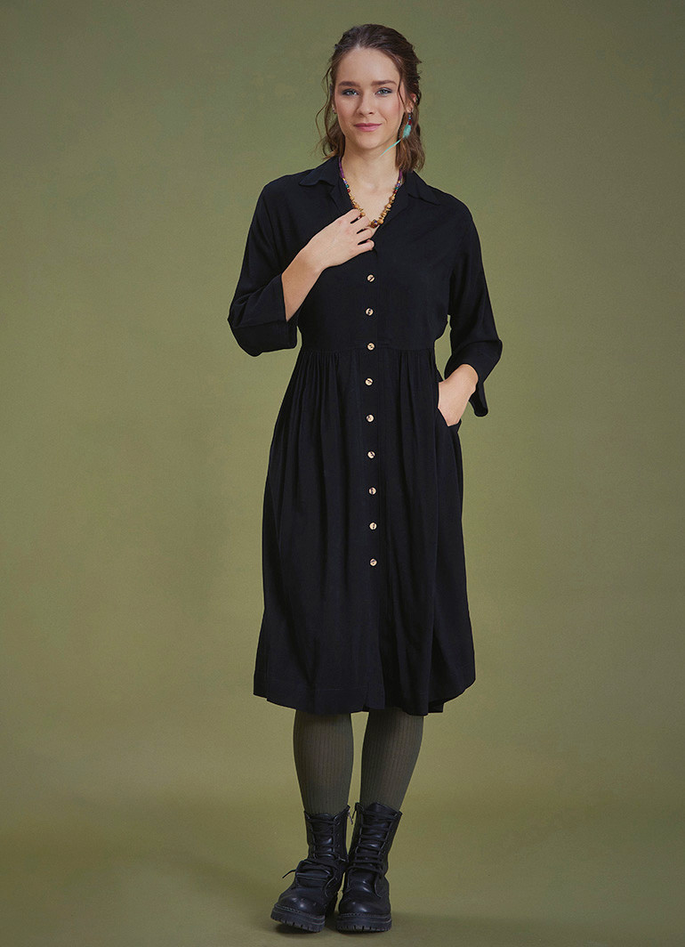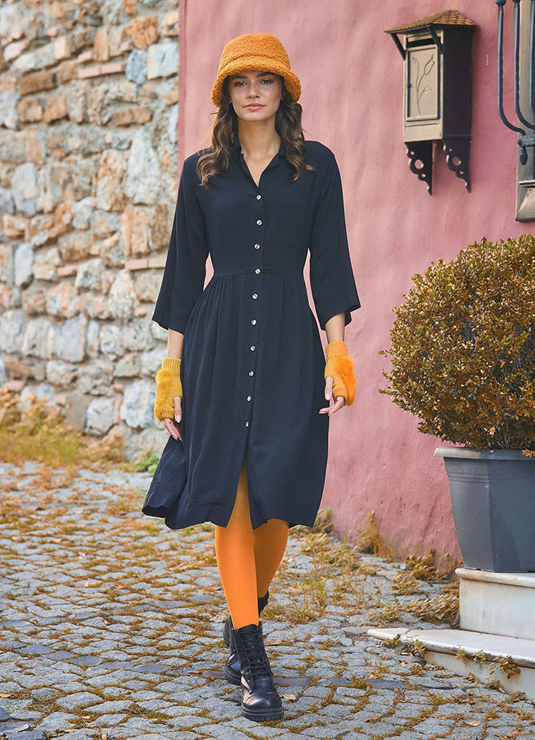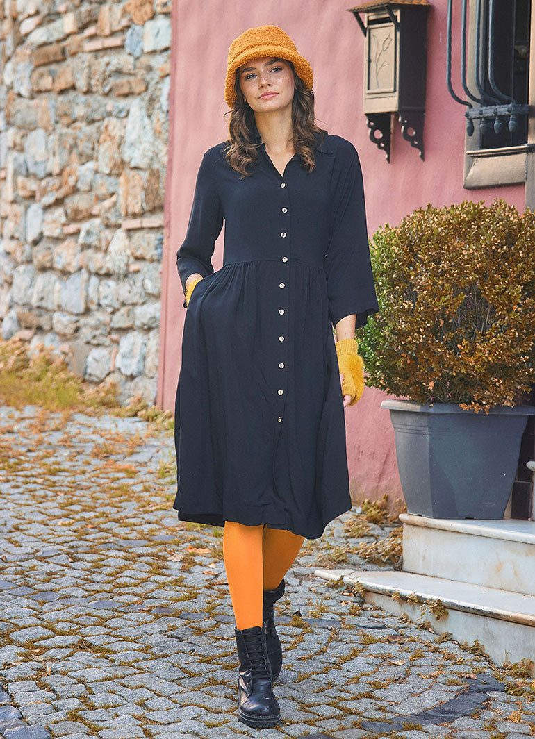 Siyah Kışlık Gömlek Elbise 6636