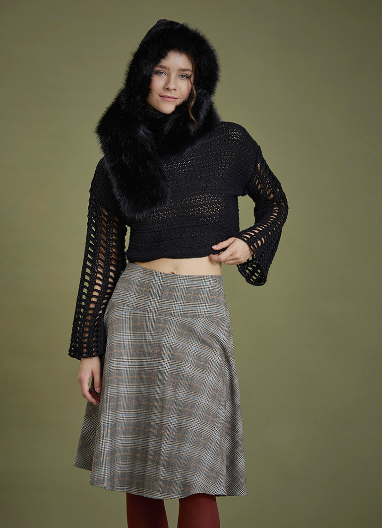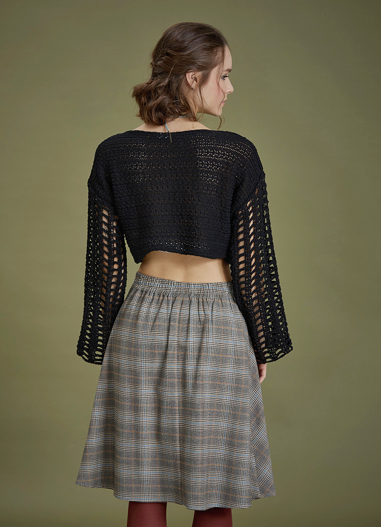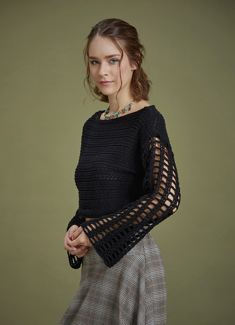 Bisiklet Yaka, Kısa Boy, Delik Detaylı, Ajurlu Örme Kazak