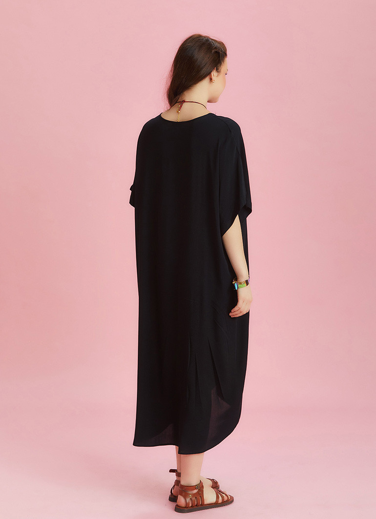 Ön Düğüm Detaylı, Bol Kesim, Yarım Yarasa Kollu, V Yaka Midi Elbise